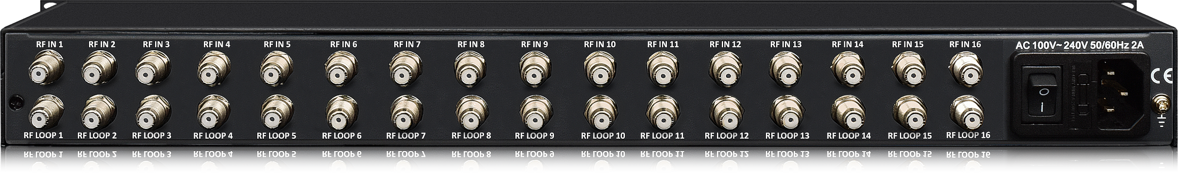 16 RF Inputs to IP outputs +16 RF Outputs (RF to IP Gateway + RF to RF transmodulator)