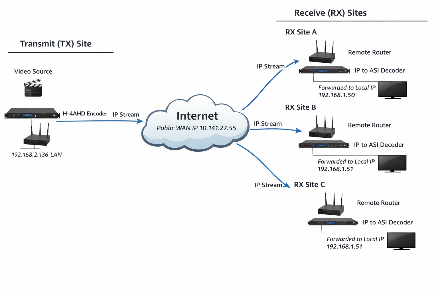 → Port forwarded to local decoder (e.g., 192.168.1.50 port 1000