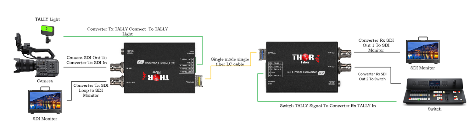 Live Event Production: Transmit camera signals and operator feedback during concerts, sports, or church events with synchronized tally indication.