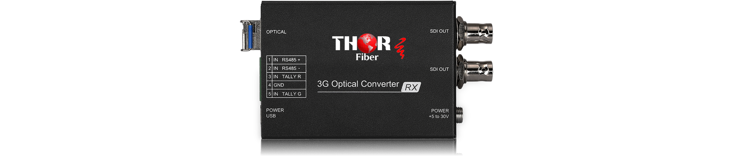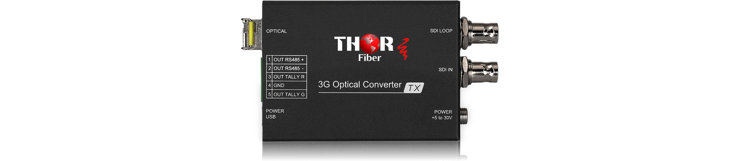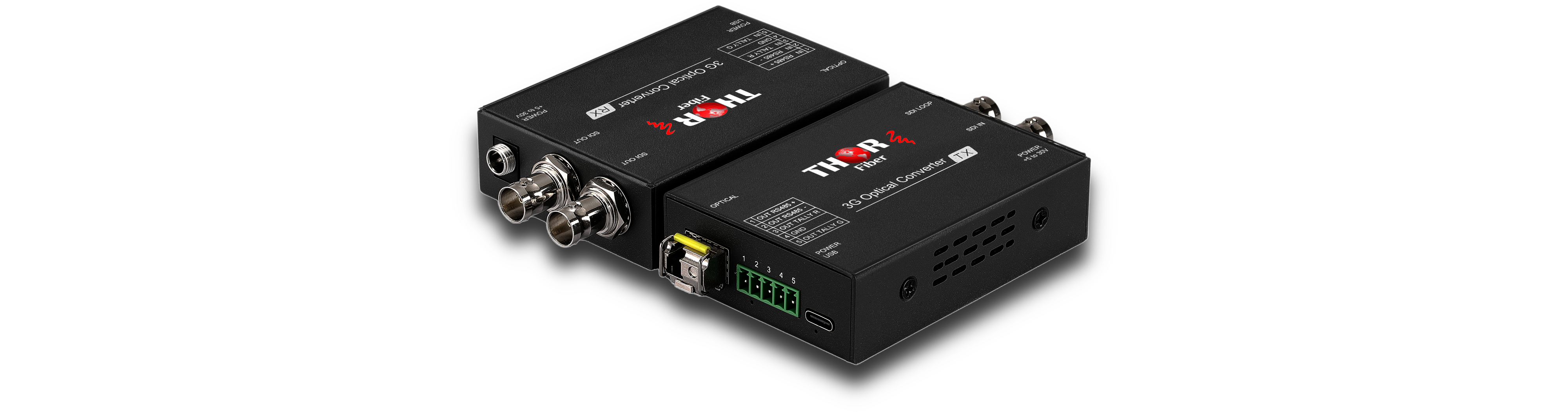 F-3G-SDI-2D-2T-TxRx – Fiber optic transmitter and receiver kit for one 3G-SDI video channel, with two return RS485 data channels and two return Tally signals. -20Km