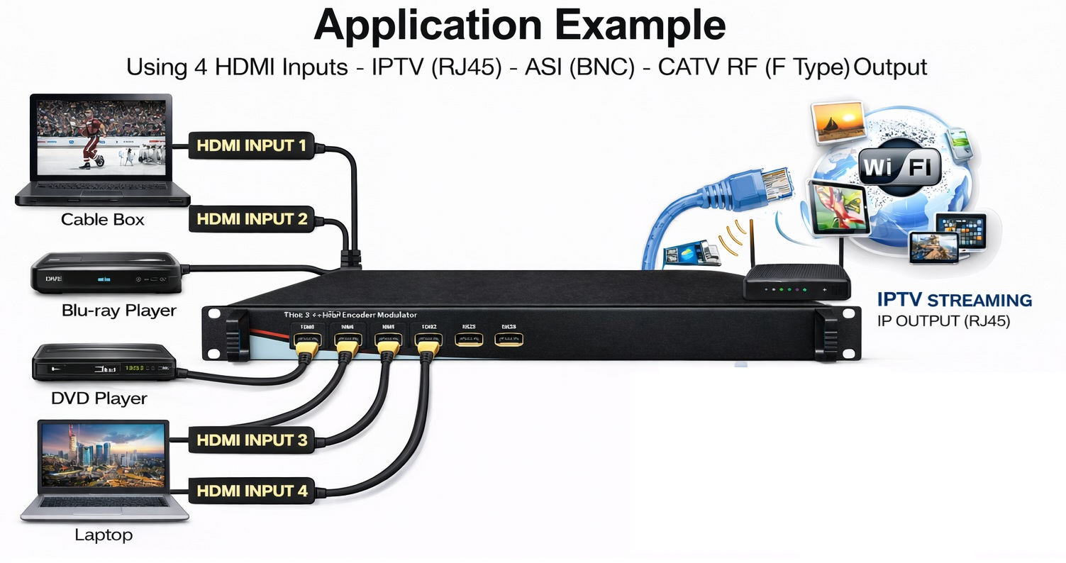 1) H-4ADHD-QAM-IPLL: 4-channel HDMI QAM modulator/IP Encoder with QAM