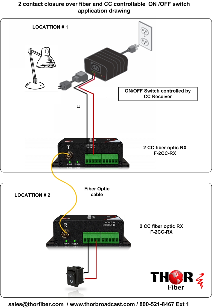 The Thor Fiber Contact Closure over Fiber Converter enables reliable transmission of dry contact (relay), GPIO, and alarm signals over long distances using fiber optic cable.