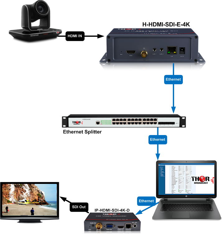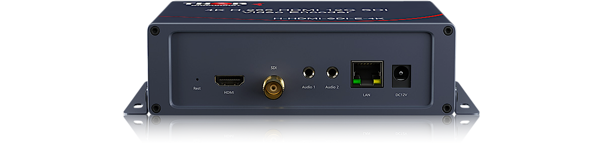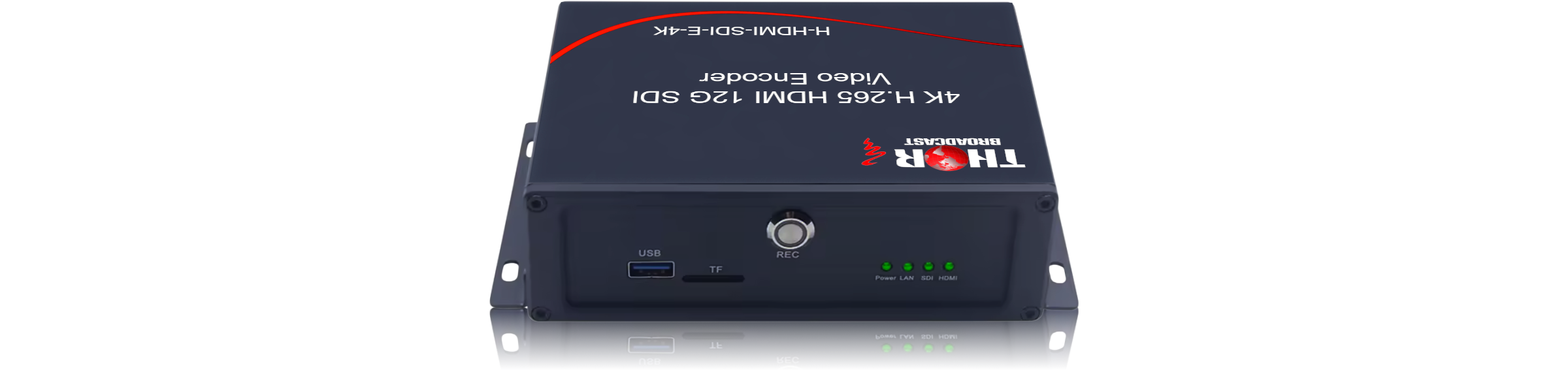 The Thor Broadcast H-HDMI-SDI-E-4K is a professional video encoder, which means it takes a video signal from any equipment—such as a camera, video switcher, or production system—and converts it into a live video stream that can be sent over a network or the internet. Instead of uploading video using a computer, capture card, or streaming software, this encoder does the job in dedicated hardware. It accepts HDR HDMI or 12G-SDI inputs, including full 4K at 60 frames per second, and compresses the video using modern formats like H.264 or H.265 so it can be reliably delivered to viewers or systems anywhere.